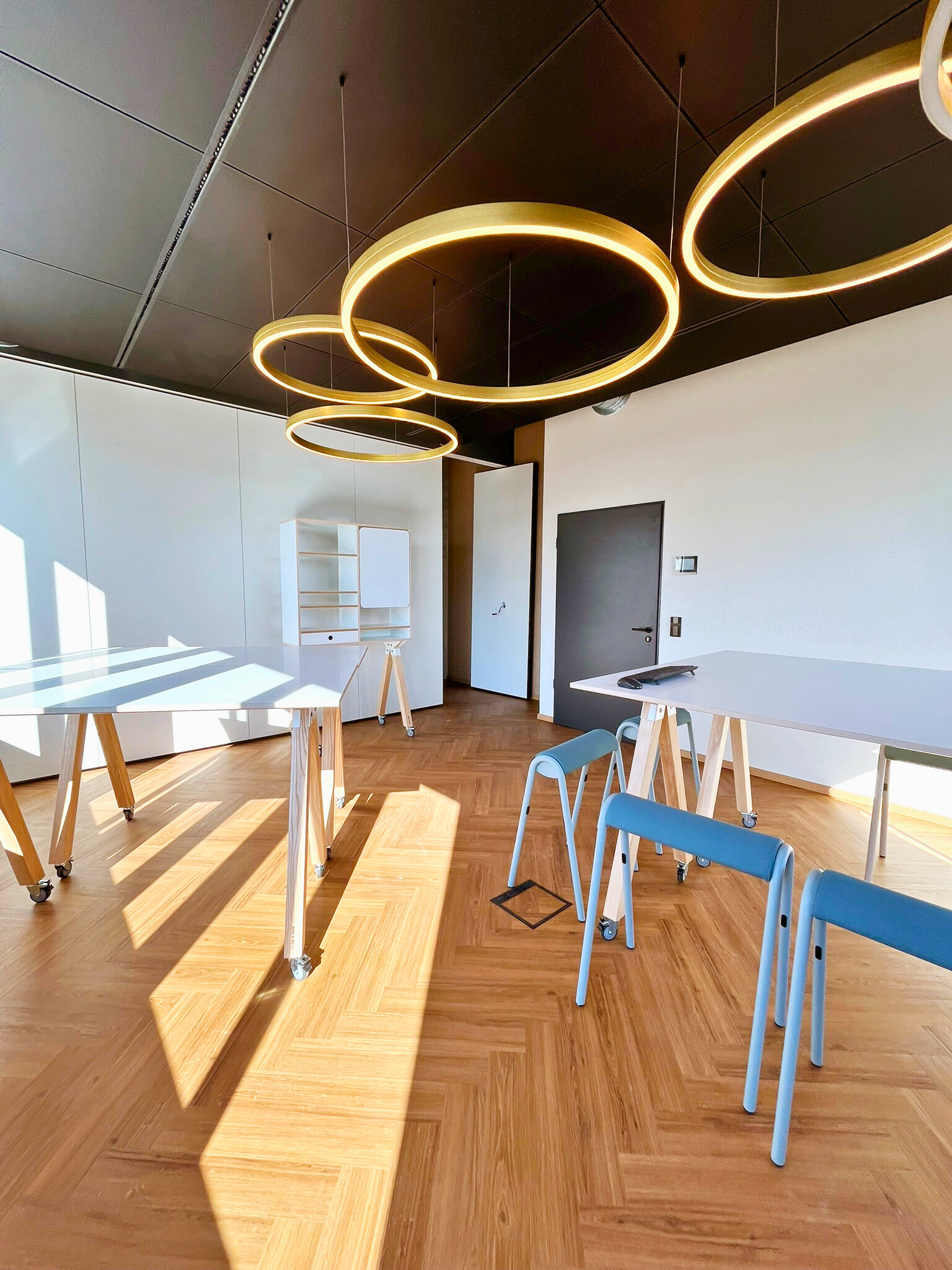Für die neue Unternehmenszentrale der Ulland GmbH umfasste das Projekt die Mitgestaltung von 17 Räumen mit unterschiedlichen Nutzungsschwerpunkten – vom Coworking-Bereich über den Empfang bis hin zur Verwaltung. Besonders anspruchsvoll war dabei die präzise Integration unserer Ausstattung in bereits vorhandene Dekoration und Systeme anderer Anbieter. Ein Prozess, der Feingefühl für das große Ganze und hohe gestalterische Disziplin verlangte. Den Grundstein dafür legte ein eintägiger Auftakt-Workshop mit unserem interdisziplinären Team und dem Kunden. Hier wurden die Weichen für eine passgenaue Umsetzung gestellt – von einer kritischen Betrachtung der Raumeinteilung und des Grundrisses bis zu detaillierten Anforderungen und Wünschen.