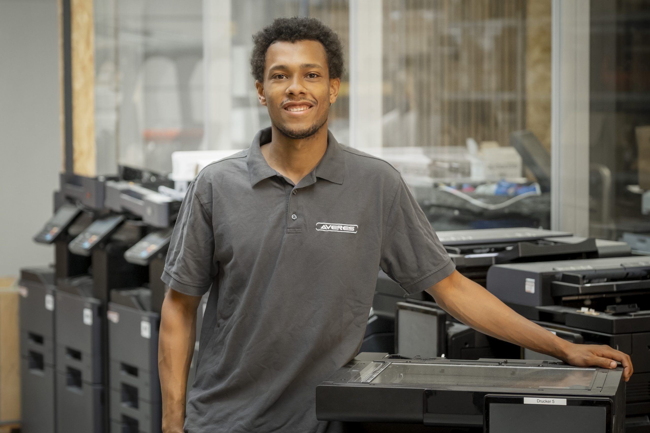 Heute kümmere ich mich im technischen Support – Printlösungen hauptsächlich um Kunden im Emsland bzw. alles, was sich an der A31 und A30 befindet. Besonders der technische Aspekt meiner Arbeit interessiert mich sehr und ist außerdem ein großer Spaßfaktor. Vor einer Herausforderung zu stehen und Lösungen zu suchen, das treibt mich an. Und was ich noch an meiner Arbeit super finde: Die Möglichkeit, Kunden aktiv zu helfen und vielleicht sogar deren Tag ein bisschen besser zu machen. Es gibt noch vieles zu lernen und viele Gebiete, in denen ich mich spezialisieren kann. Ich kann es kaum erwarten, wo mich der Weg mit AVERES hin führt.“
